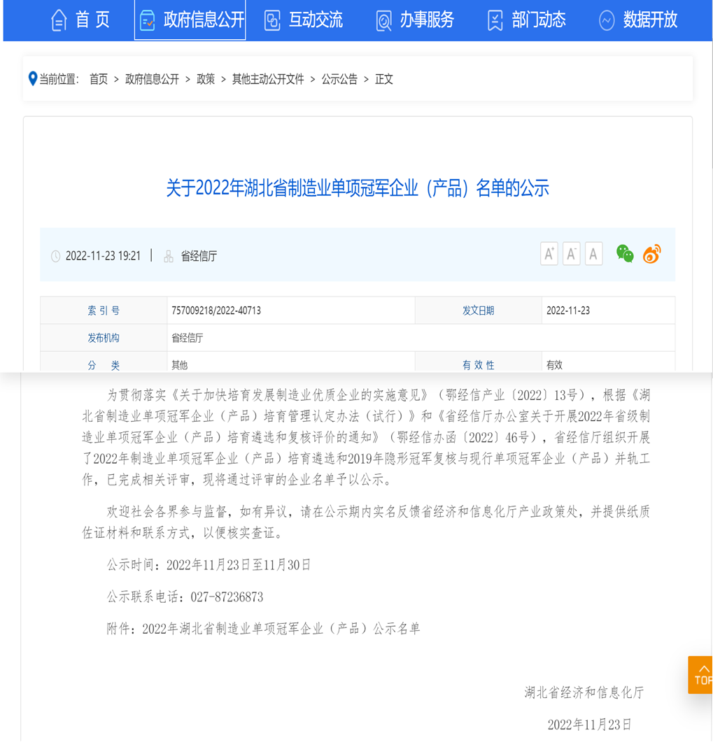 湖北凱瑞知行智能裝備有限公司榮獲 2022年-2024年度 “湖北省制造業(yè)單項(xiàng)冠軍示范企業(yè)”榮譽(yù)稱號(hào)